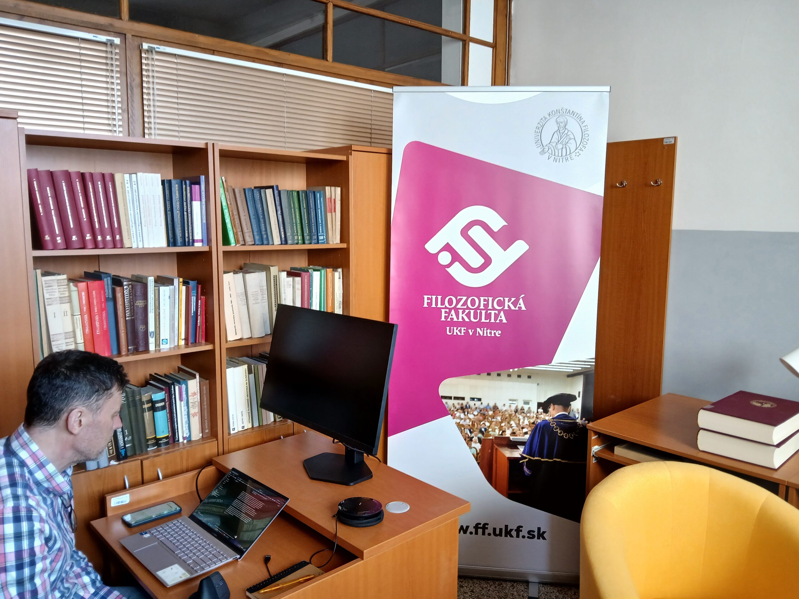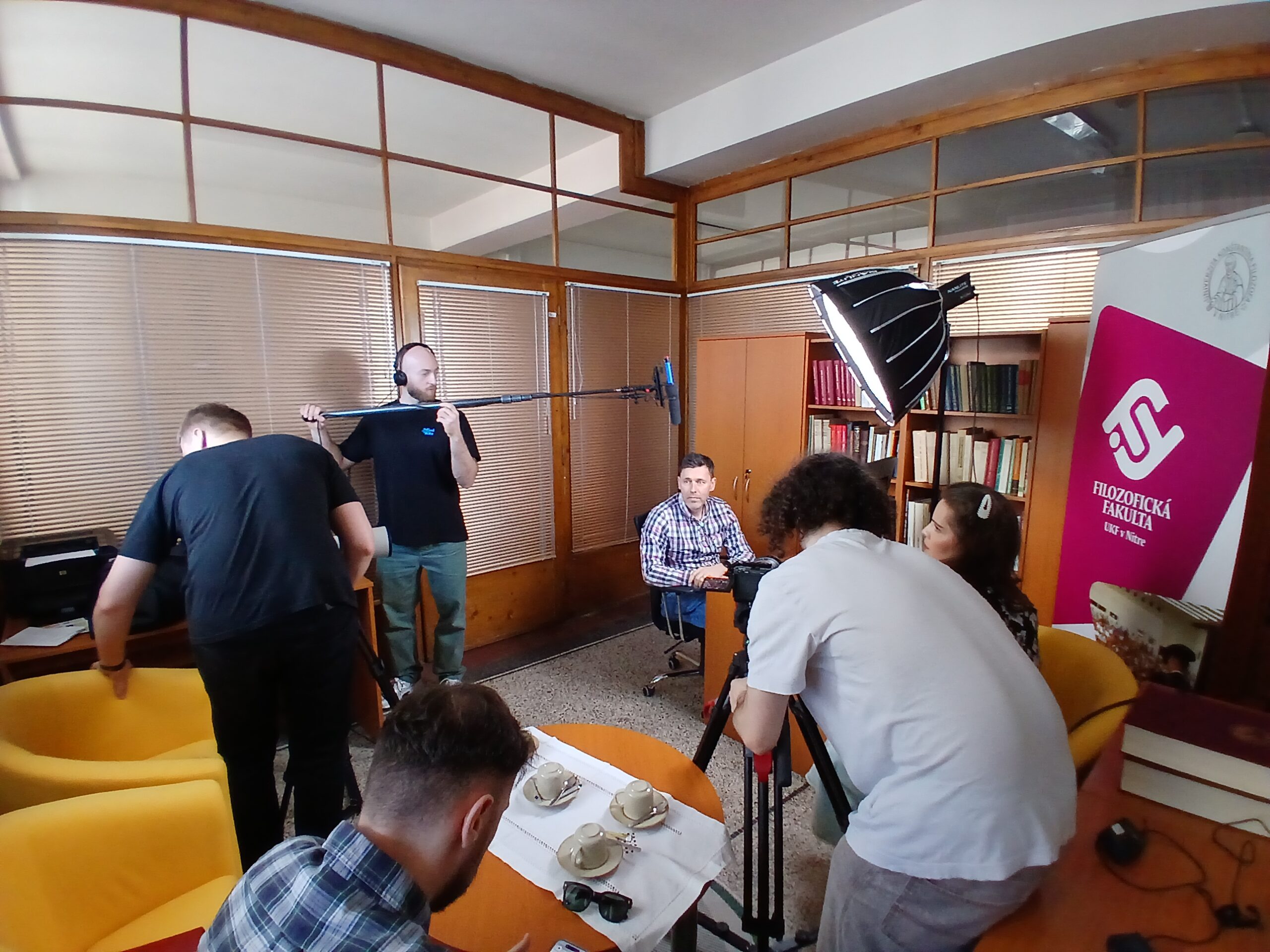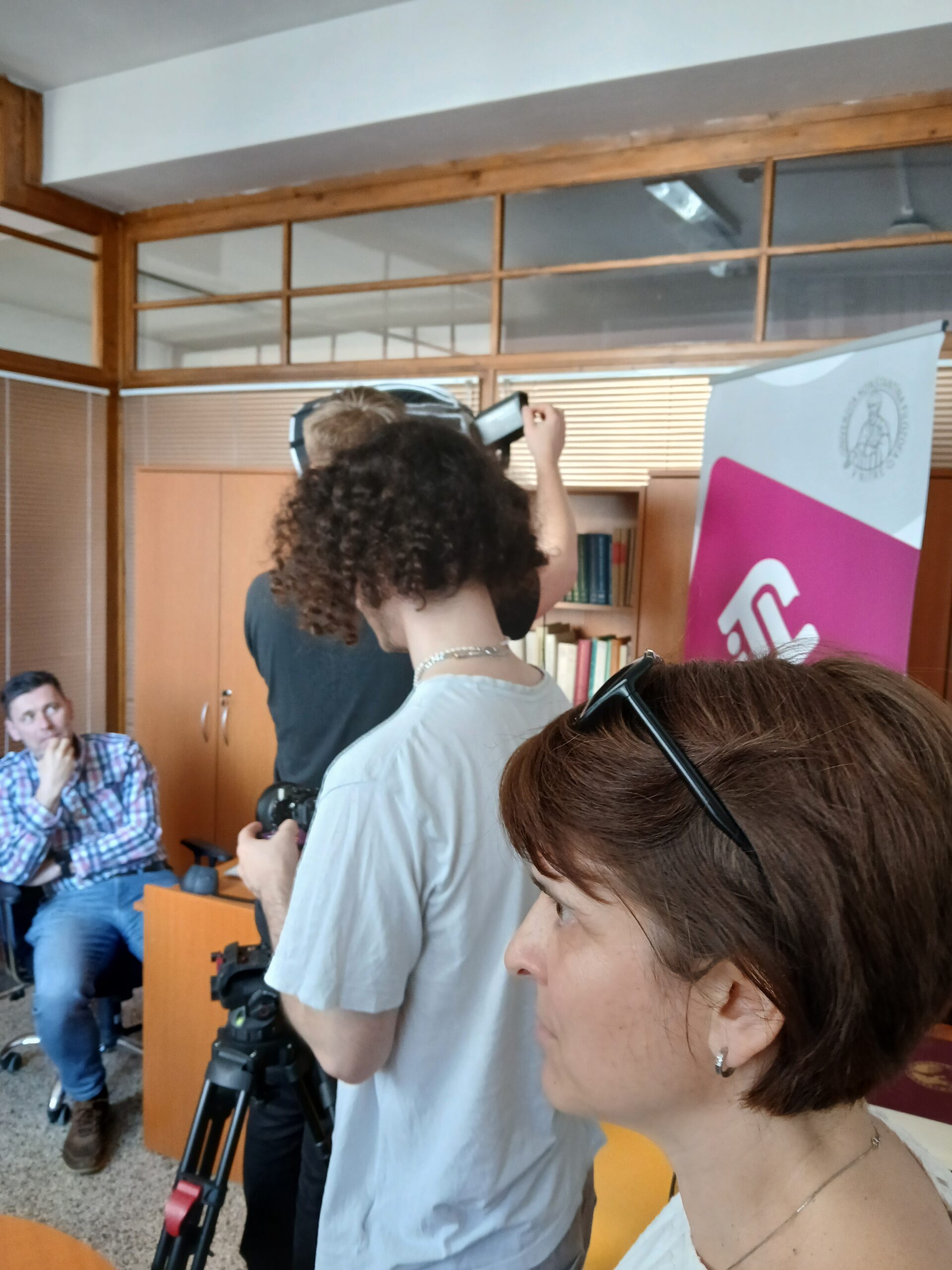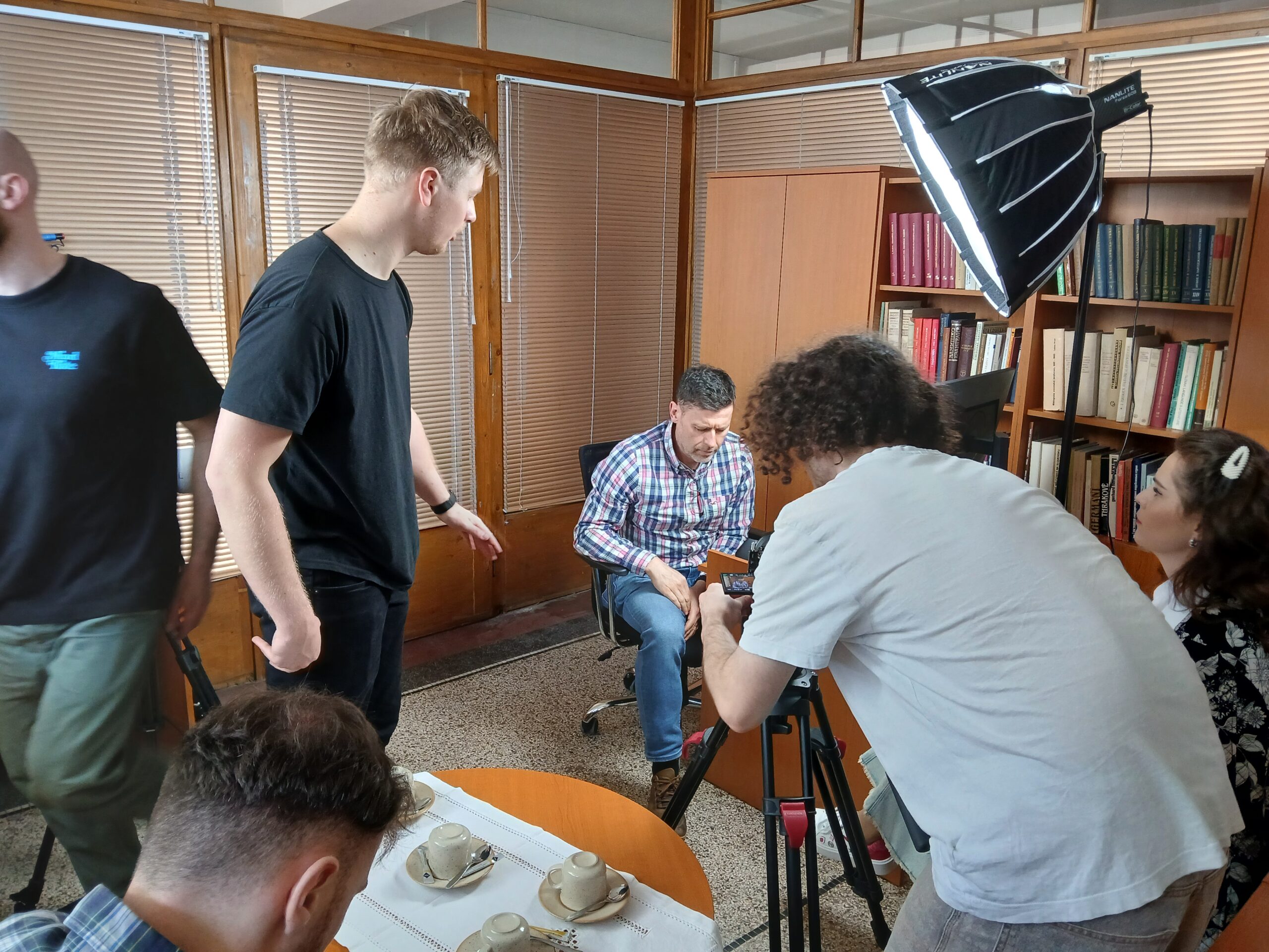 On Thursday, 12 March, a filming team from the Ministry of Education, Research, Development and Youth of the Slovak Republic visited Constantine the Philosopher University in Nitra as part of an initiative highlighting unique and innovative study programmes at Slovak universities. The recording took place, inter alia, in the Semantic Laboratory (SemLab) at the Department of Slavic Philologies, Faculty of Arts. The laboratory was established within the framework of the OXYMORAL project and supports interdisciplinary research and education.