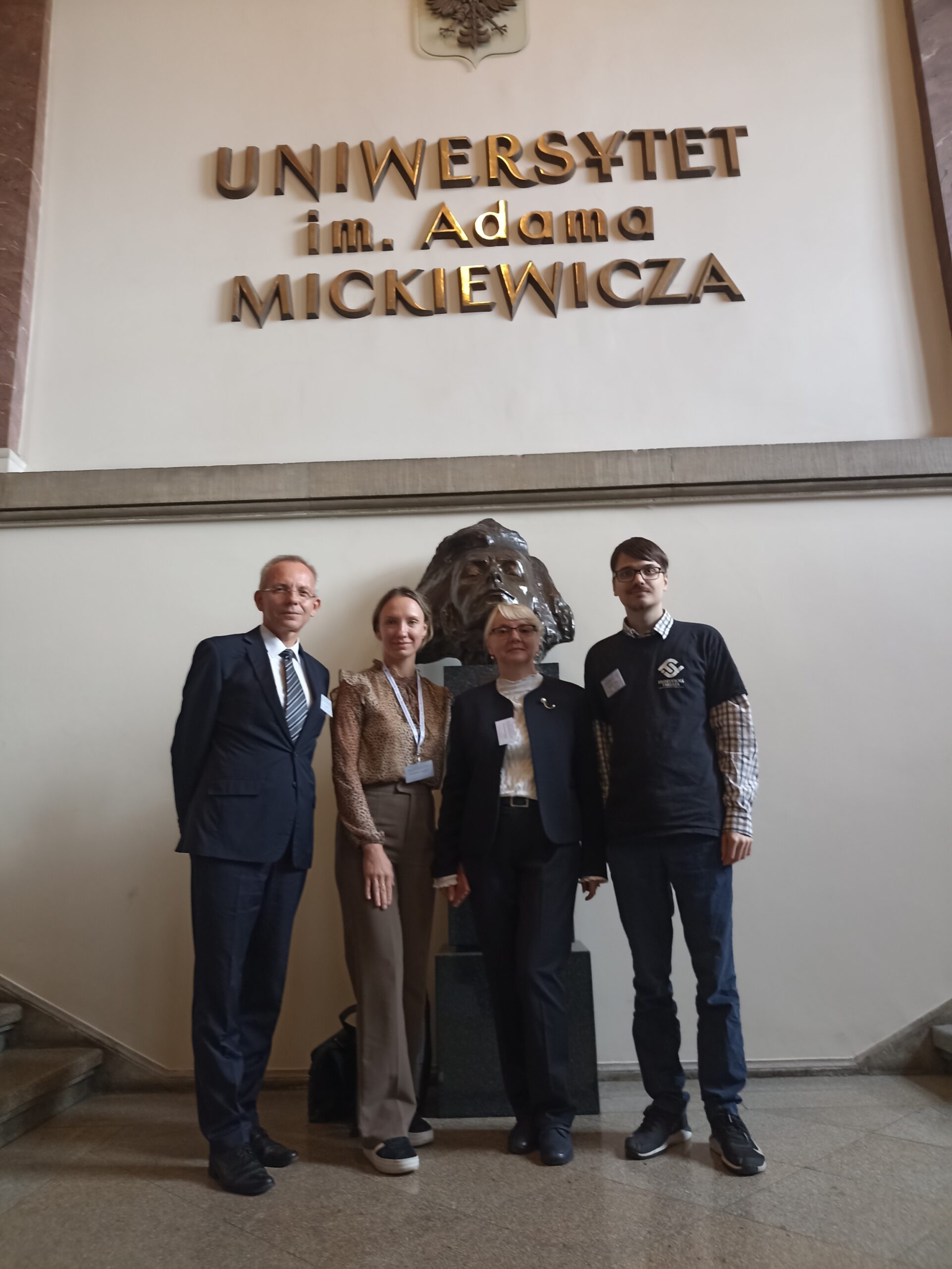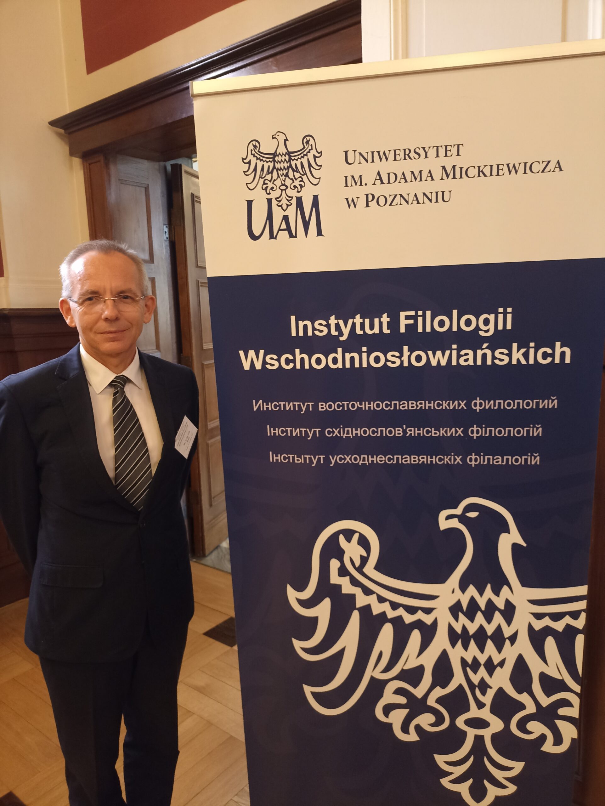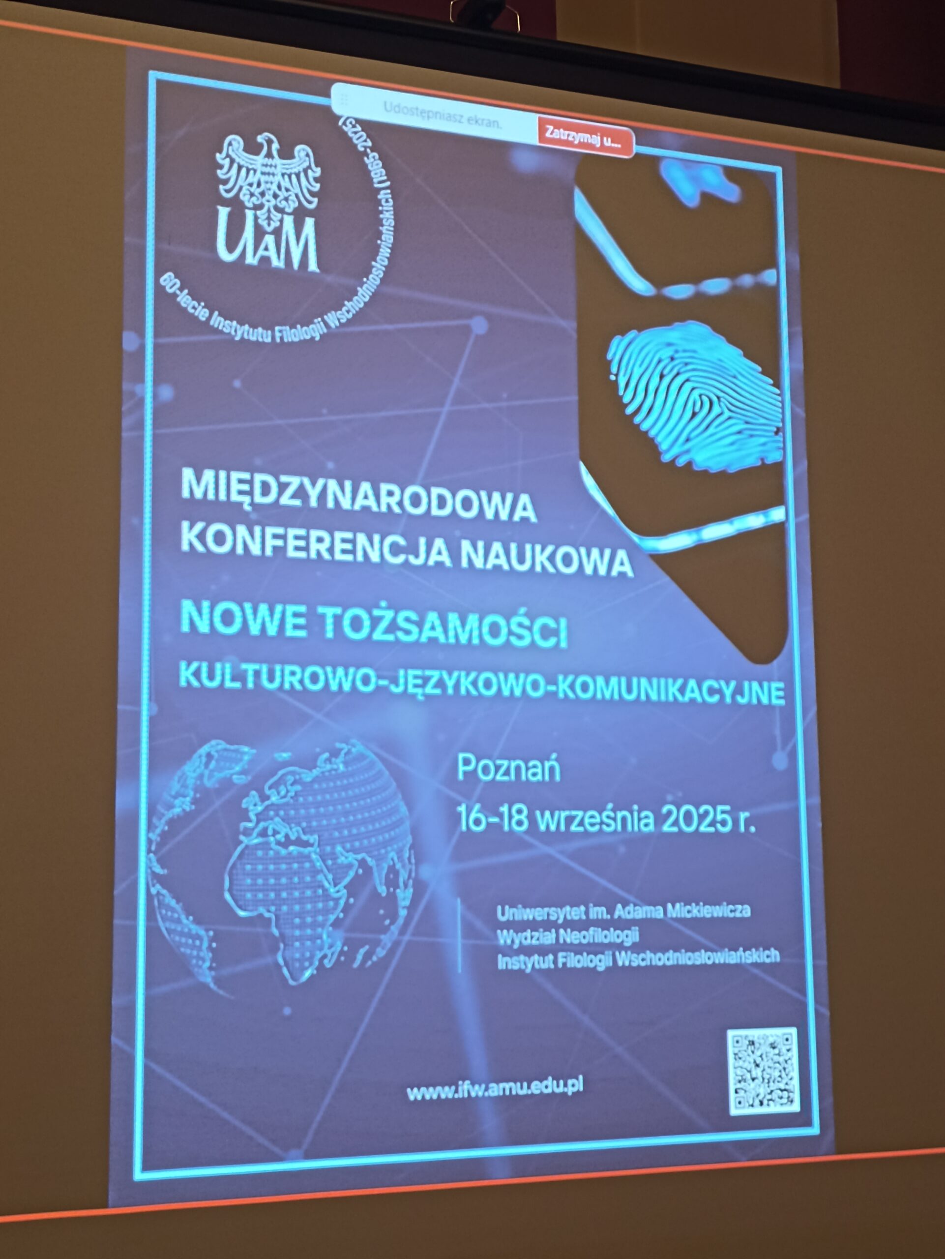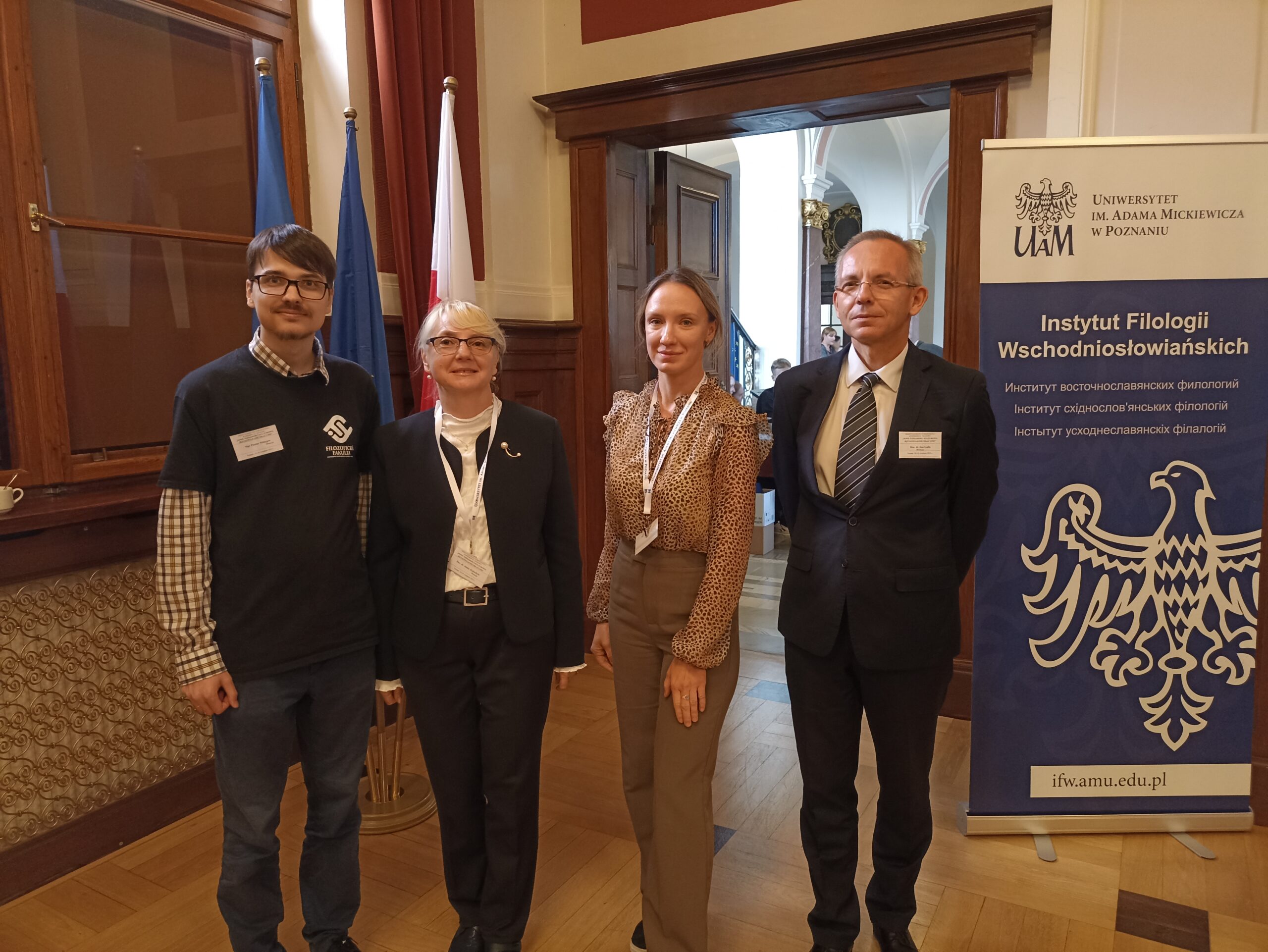On September 16-18, 2025, the anniversary international scientific conference “New Identities in Culture, Language and Communication” was held at the Faculty of Modern Philology of the Institute of East Slavic Philology at the Adam Mickiewicz University in Poznań (Republic of Poland). At the conference researchers from Poland, Estonia, Slovakia, Croatia, Serbia, Ukraine, Latvia, Greece, Germany, France, Spain, Great Britain and the USA presented their papers in a hybrid form. The languages of communication in the sections of literary studies, linguistics and communication studies were Polish, Russian, Belarusian, Ukrainian and English. Oxymoral R2s Ján Gallo and Alena Kalechyts as well as Oxymoral R1s Bohdana Kravchenko and Fedor Miliaev presented their papers “Means of Egopresentation of Belarusian Journalists: Level of authorship“, “On some Distinctive Means of Advertising Communication (on the Material of Slovak Commercial Advertising)” and ”Linguistic Personality as a Reflection of the Teacher’s National, Social and Individual Identity” as part of the OXYMORAL project.